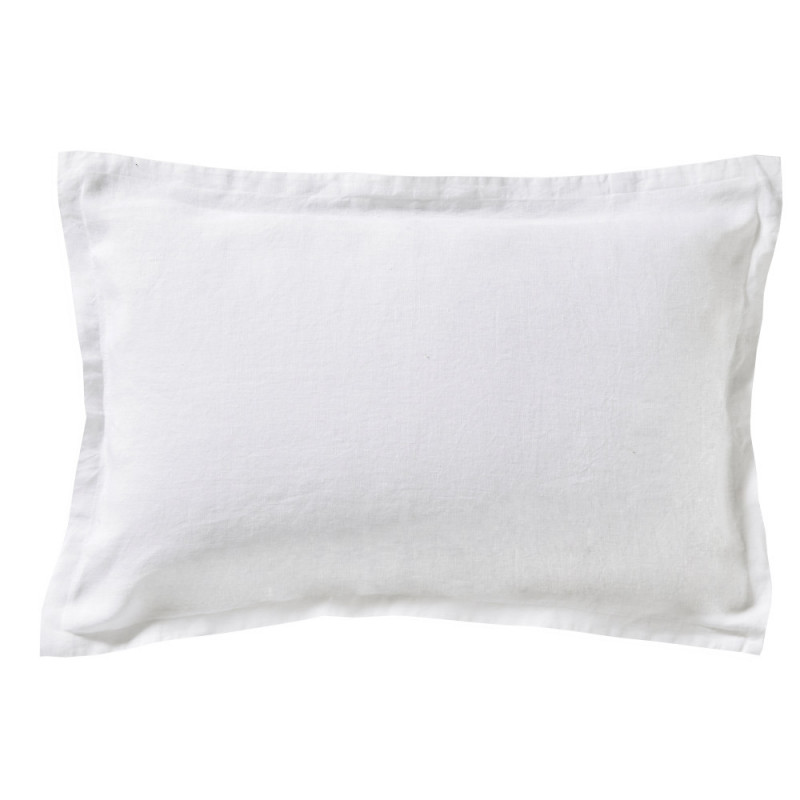 - La taie d'oreiller carrée ou rectangle : forme volant plat sans bourdon uni blanc 100% lin lavé